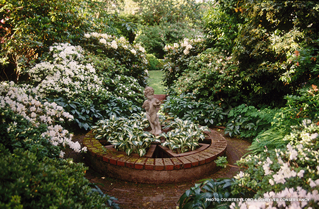 Throughout the entire process, the Conservancy and its group of dedicated volunteers have been restoring the gardens to their period of significance, conducting research, and publishing books and materials to elevate the status of the site and the legacy of Lord and Schryver. Historic photo slides and interviews with family and friends of the duo have helped the organization establish priorities and follow guidelines and principles on landscape treatments from the U.S. Department of the Interior and from Lord and Schryver themselves. Dolp says they were fortunate that the previous owners had so lovingly tended to the site for 27 years.