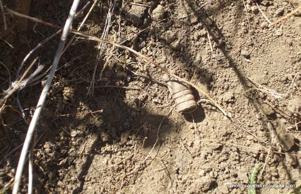 A careless smoker threw a cigarette out, driving along the highway. It caused a grass fire that burned all this stuff off, about 800 acres at the time. There have been two more fires since then. The good thing about the fires is that they got rid of all the invasive stuff and sagebrush and brought back native grasses, and they moved that vegetation to the point where you actually see the ground. Those were ideal conditions for us, from a metal detecting point of view. We couldn’t have tested that use of metal detectors in a better location at a better time.