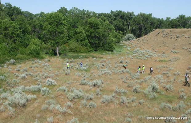 A metal detecting team of National Park rangers and volunteers working near the Little Bighorn River in 2010, the last time Douglas Scott participated in a survey at the site.