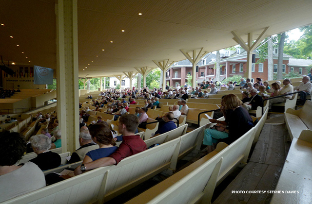 It’s actually not the most beautiful building in the world -- I think that should be said right out front. It’s almost non-architecture in a way, because it is without much great style to it, but it has a presence, a feeling, an aura, that’s very powerful. Chautauqua is one of those unusual assemblages of buildings in which the whole is more than the sum of the parts. The Amphitheater is really its functional and its spiritual center.