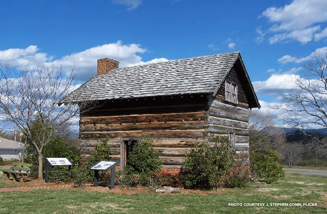 The reconstructed slave cabin situated next to the Chief Vann House holds an exhibit that discusses slave life on James Vann's plantation.