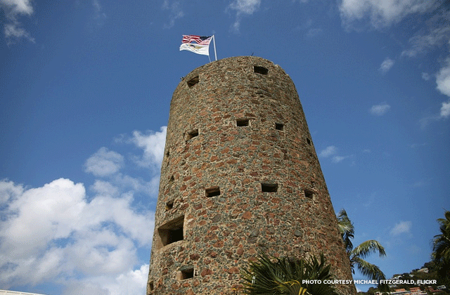 Originally named Skytsborg (Sky Tower) by the Danes, Blackbeard’s Castle was built in 1679.